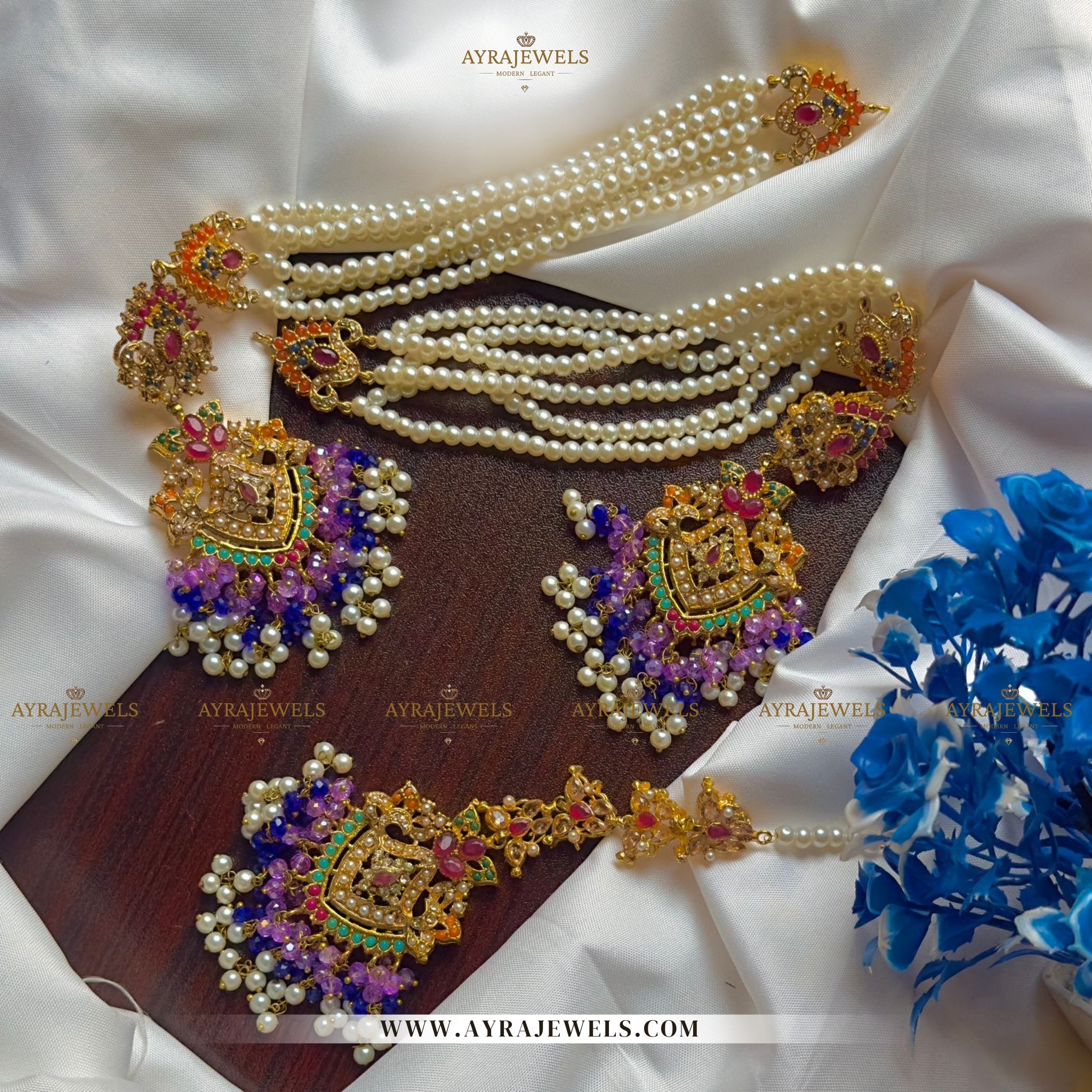 Add a royal touch to your look with our Nouratan Earrings Set, featuring heavy statement earrings, matching sahare (ear chains), and a teeka. Perfect for bridal wear, mehndi functions, cultural events, and festive occasions, this set combines intricate craftsmanship with luxurious color combinations.
