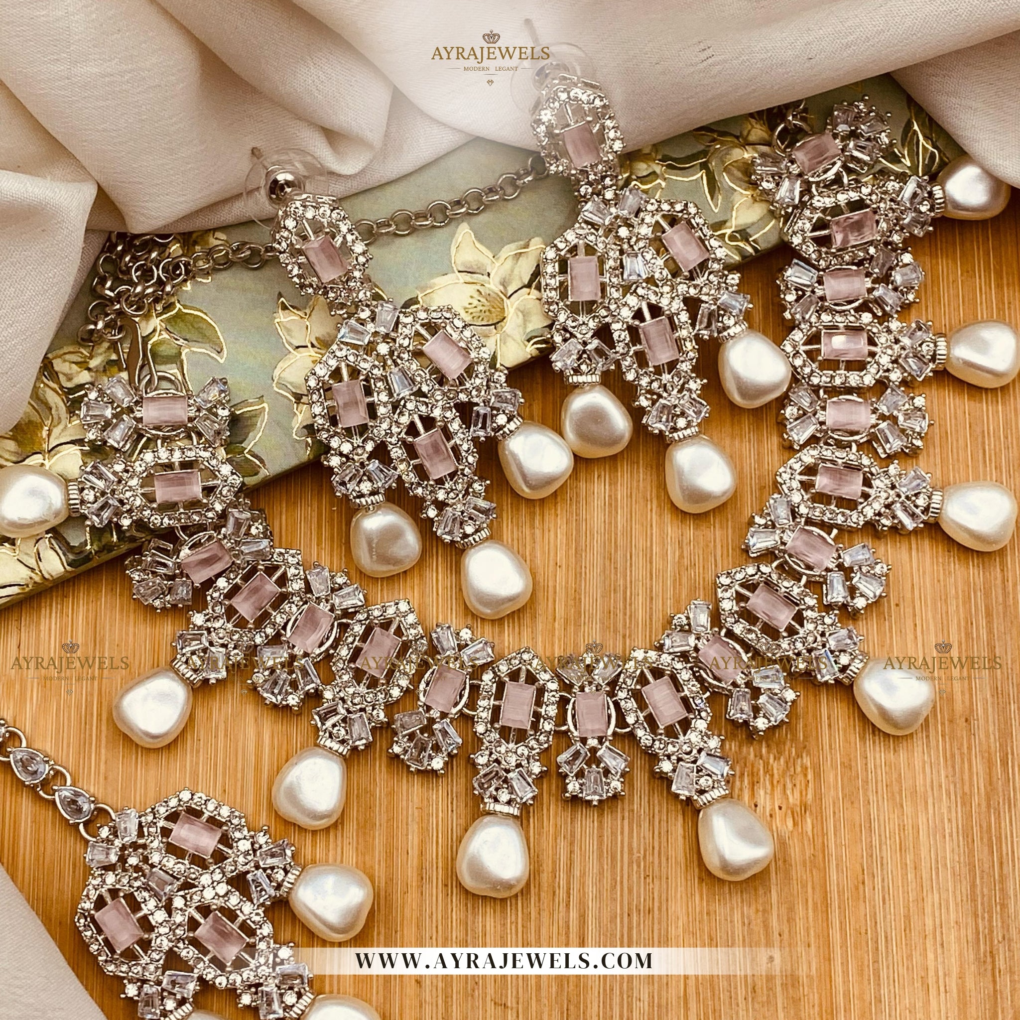 Elevate your festive or wedding look with our Zarcon Party Wear Set, featuring a beautifully designed necklace, matching earrings, and a teeka. Perfect for engagements, receptions, parties, and traditional celebrations, this set combines sparkle with elegance for a timeless style.